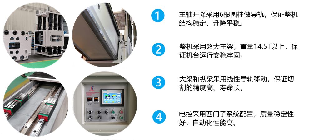 (3) Crossbeam and carling adopt Taiwan's Hiwin linear guide to move, which ensure high precision of cutting and long life.